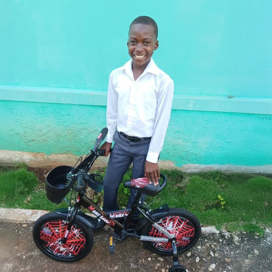A toy bicycle brings joy and playfulness to a child in Haiti. This gift provides a fun and engaging way for children to develop coordination while enjoying the simple pleasures of play.